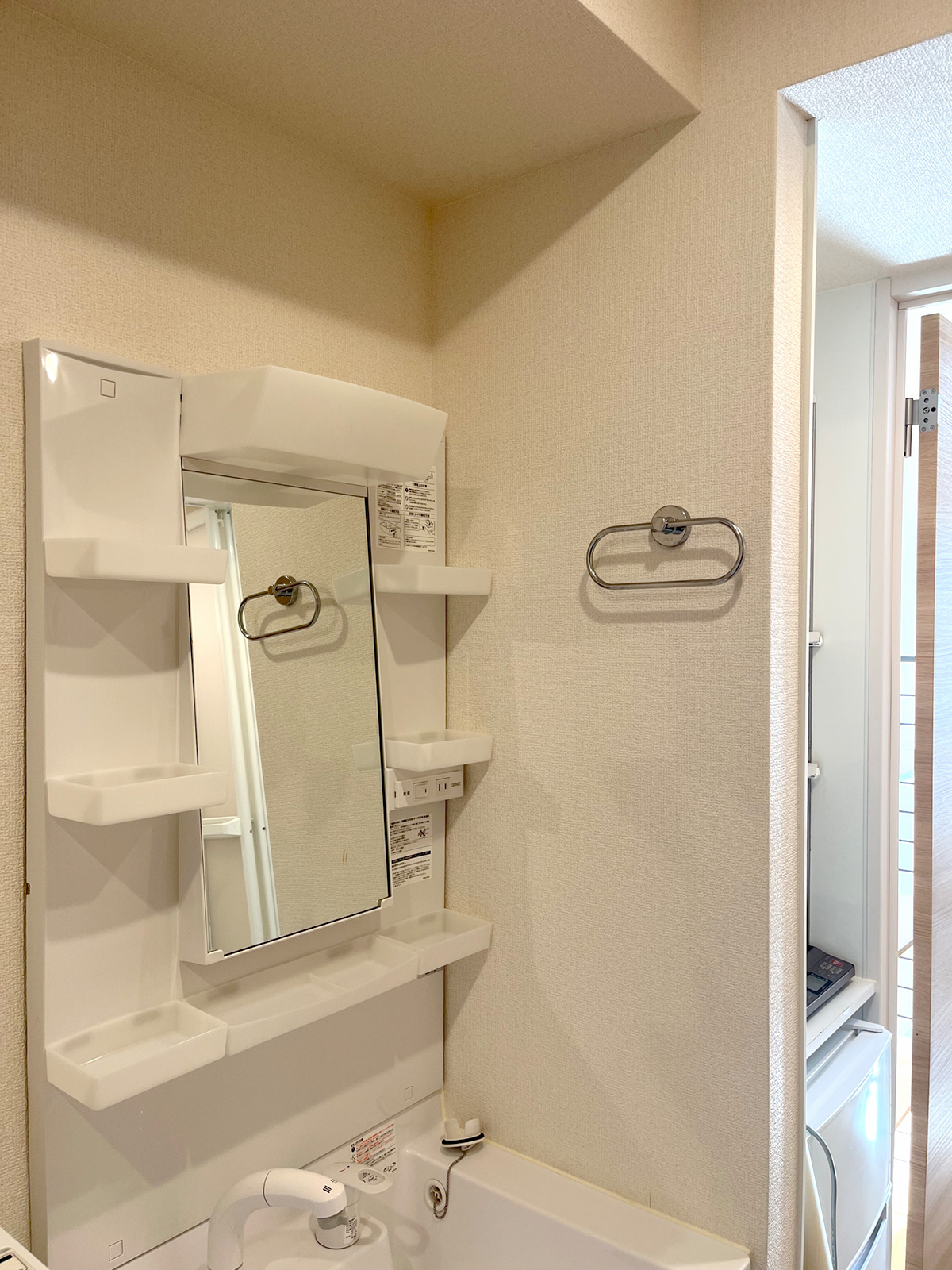 ハウスクリーニング後、 キッチン側の壁面・ WCの壁面・キッチン側の壁面をクロス再生しました。
